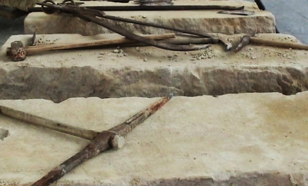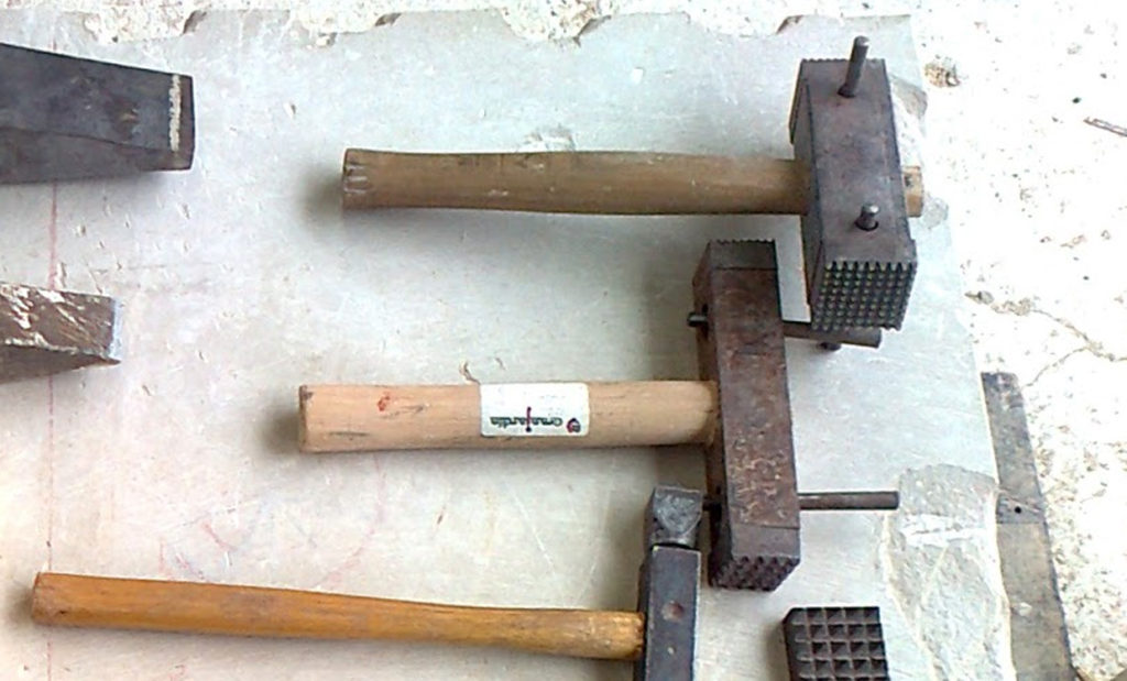 El trabajo del cantero es sobrio y duro, por ello sus herramientas son muy específicas y en la mayoría de los casos herederas de las que se utilizaban hace décadas.