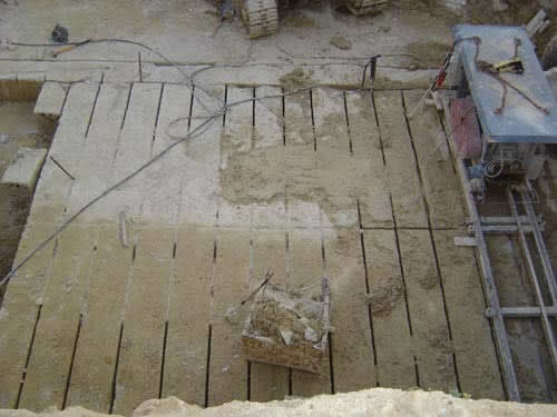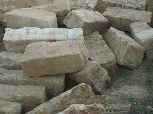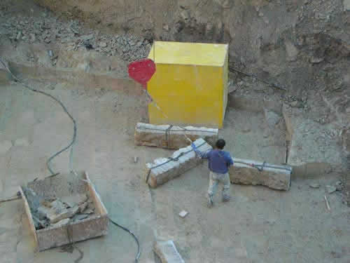 A continuación, se marcan los cortes transversales y se corta siguiendo el mismo procedimiento, obteniendo bloques de piedra denominados MAMPUESTOS.