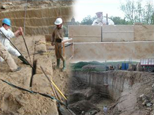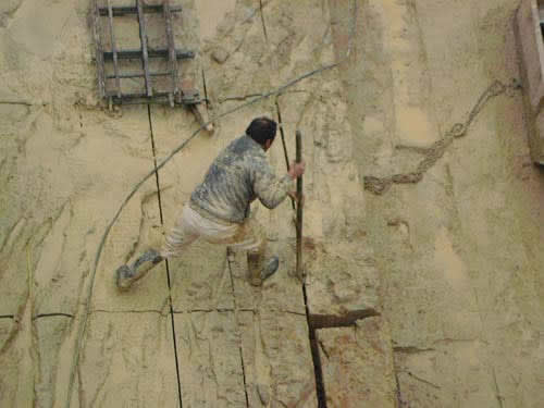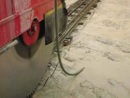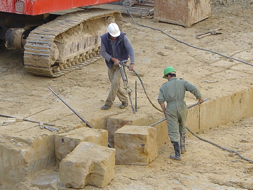 Si la longitud del bloque es superior a la necesaria se corta por medio del martillo neumático o con la ayuda de cuñas que se introducen en la cara superior y en las laterales.